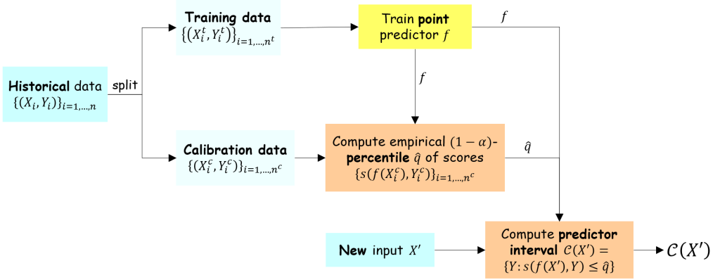 Conformal prediction procedure. Consider a prediction (regression or classification) problem. Given a historical dataset of i.i.d. pairs