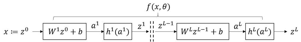 Feed-forward DNN. We here consider that the model takes on the form of a feed-forward DNN, with